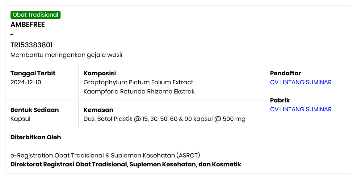 Obat Wasir – Ambefree merupakan Obat Wasir Alami pertama yang terbuat dari bahan herbal tradisional. Obat Wasir Ambefree efektif untuk menyembuhkan penyakit Wasir Karena Ambefree dibuat dengan bahan berkualitas dan Formula Obat yang 13x lebih ampuh untuk sembuhkan wasir. Ambefree Teman Lawan Wasir. Duduk lebih nyaman, aktivitas menjadi lancar.