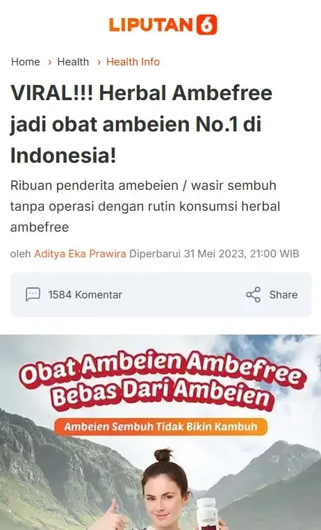 Bebas dari Penyakit Wasir Tanpa Operasi. Ambefree Hadir sebagai Solusi Alami Tanpa Efek Samping Bantu Mengatasi Gejala Wasir